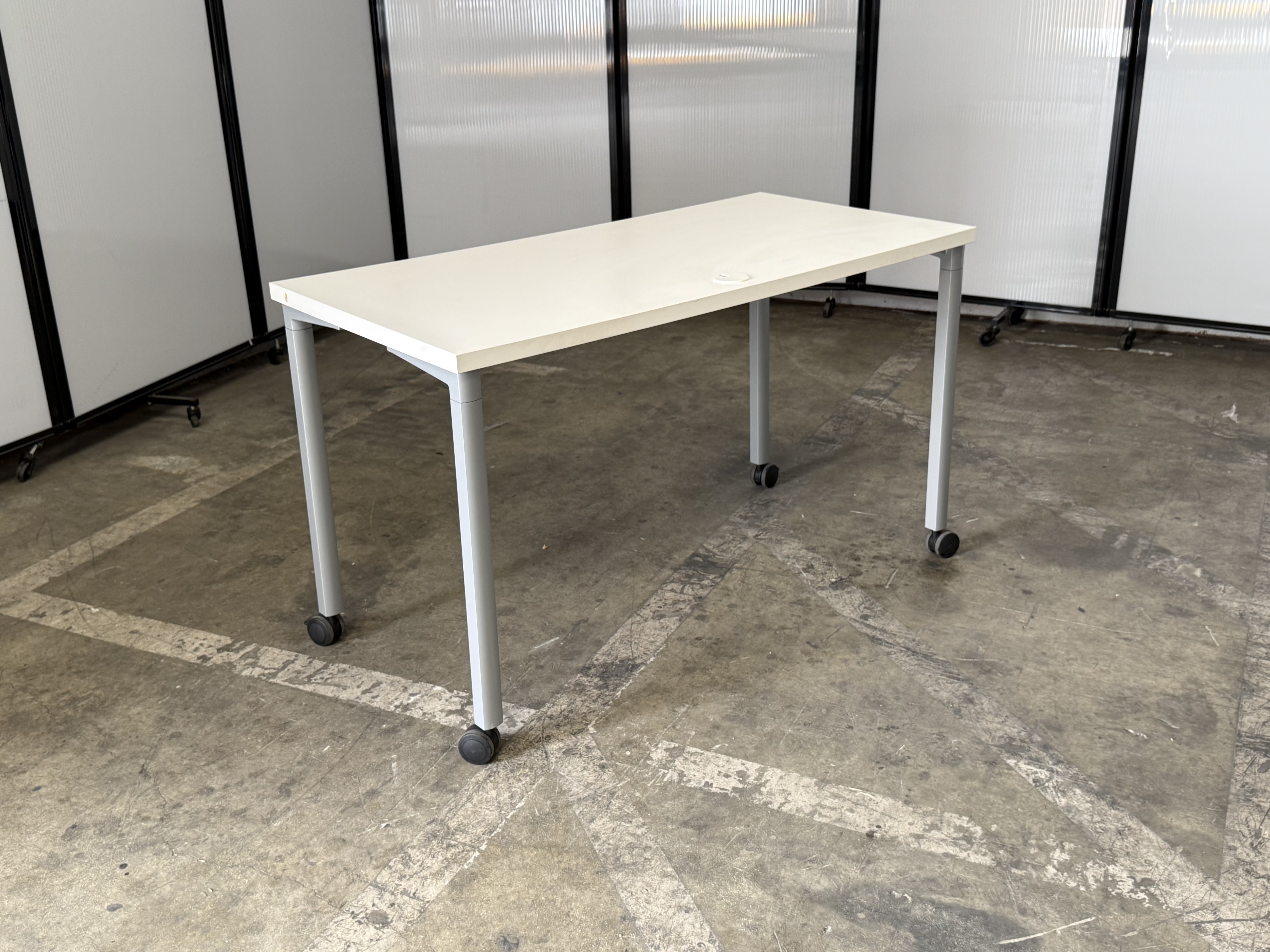 Herman Miller white top silver legs 4'x2' table on casters