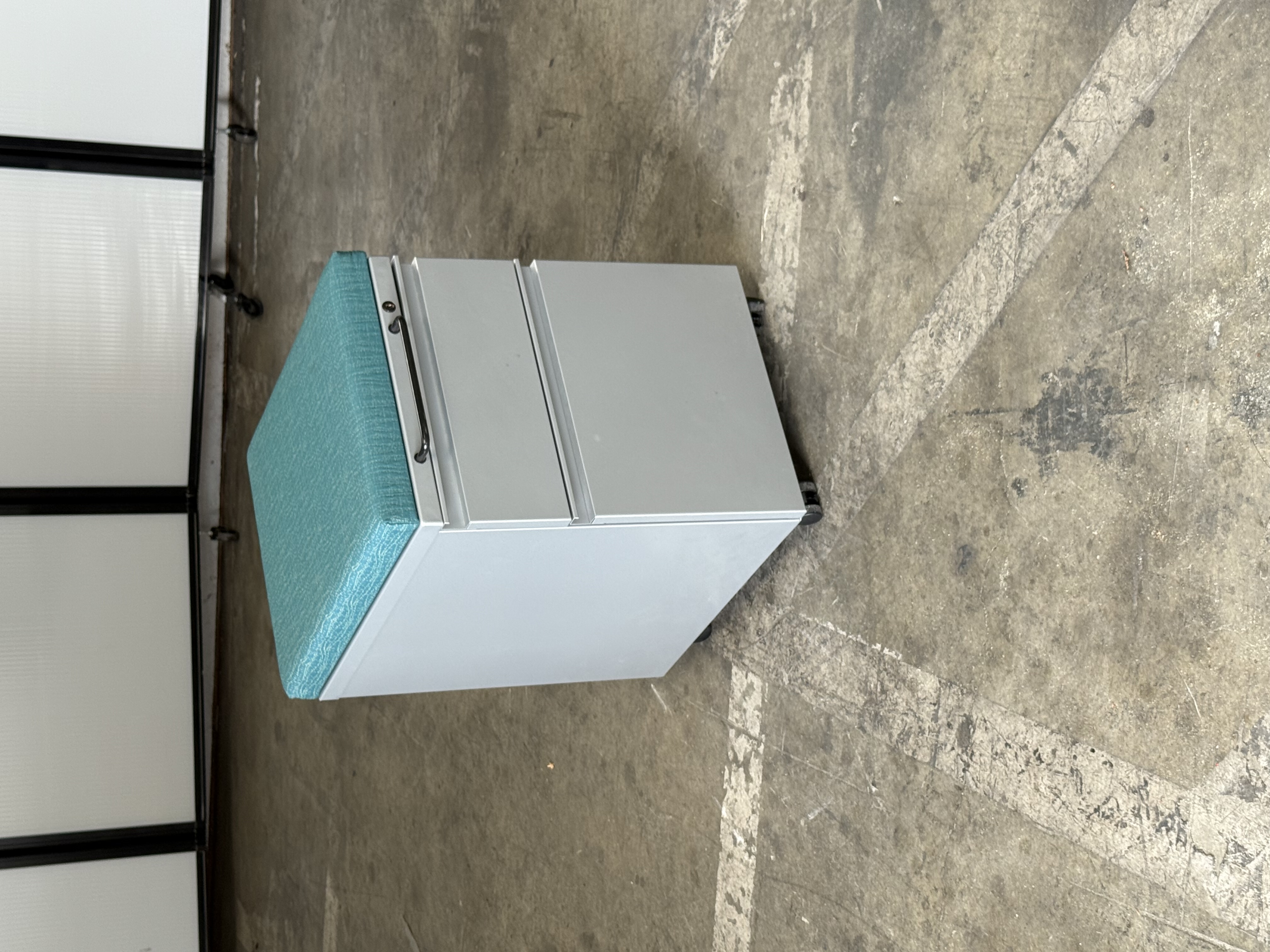 Herman Miller silver multi-colored mobile pedestal with removable aqua green & orange