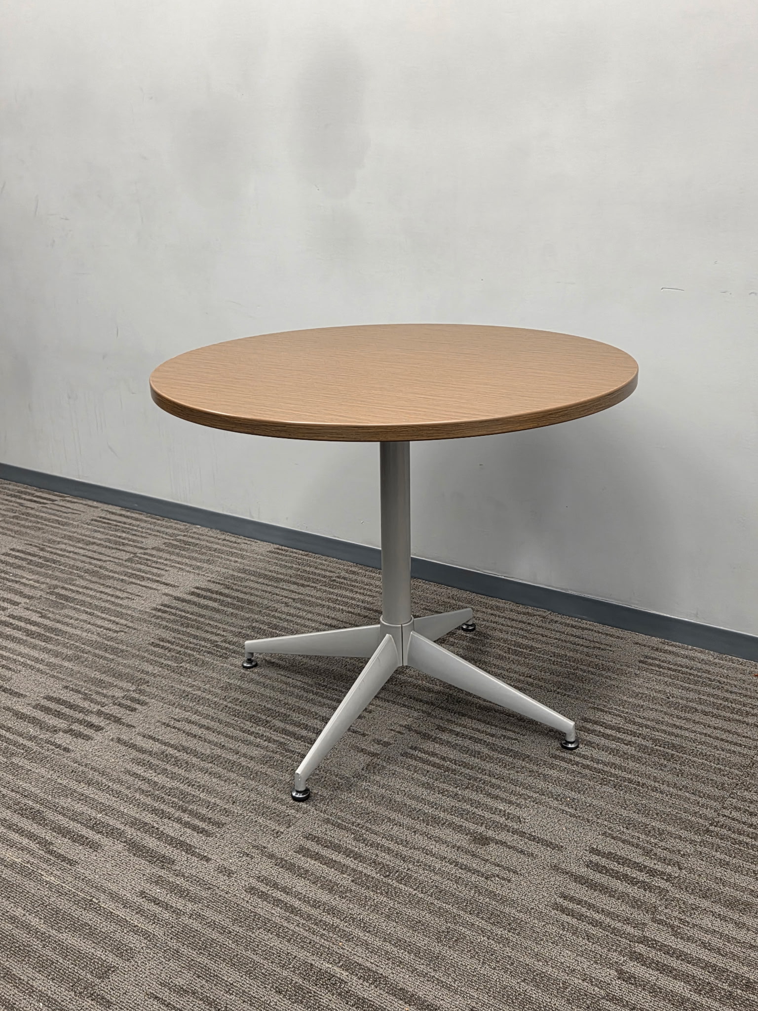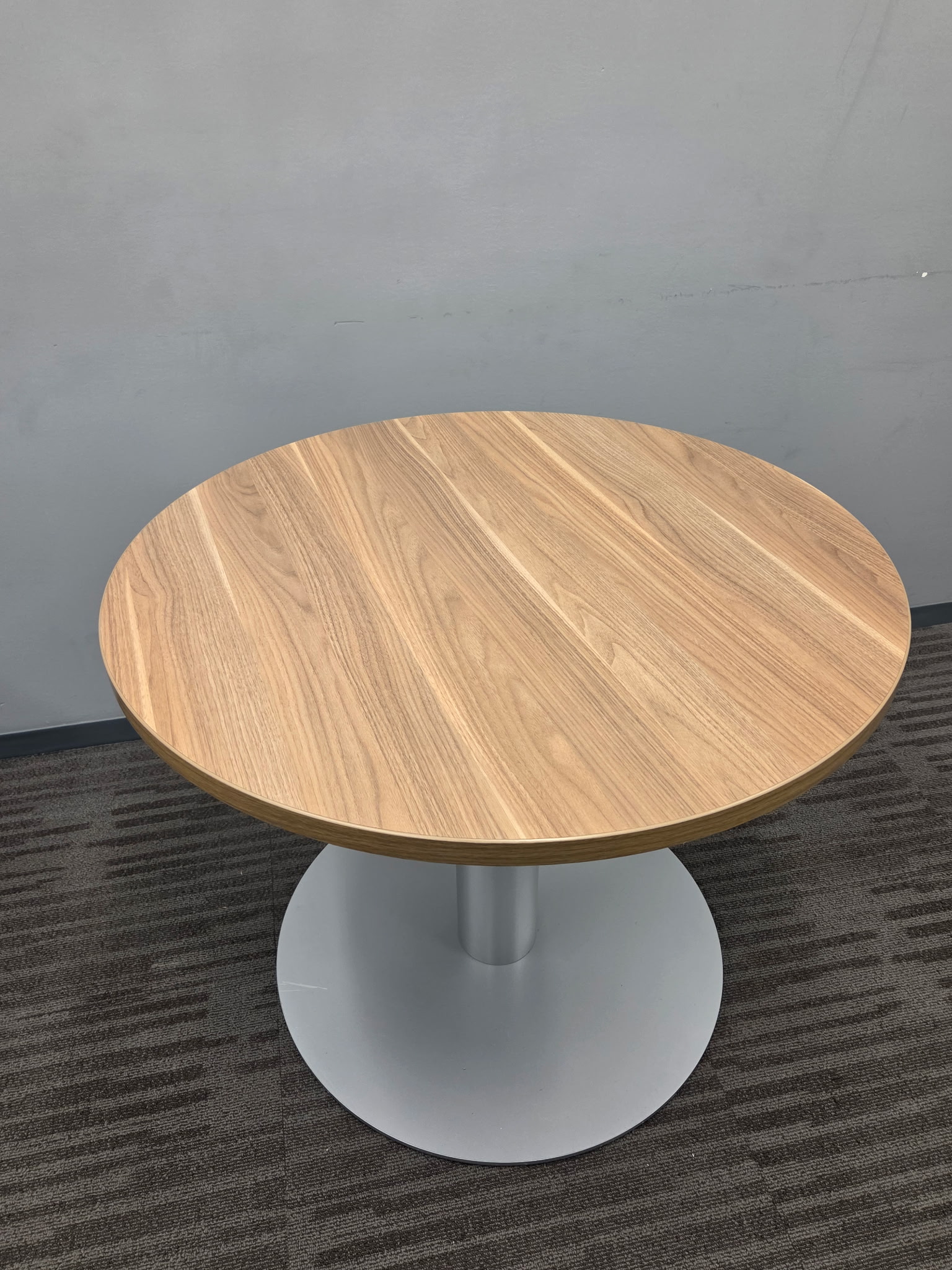 Steelcase Coalesse 30” round walnut top with silver base