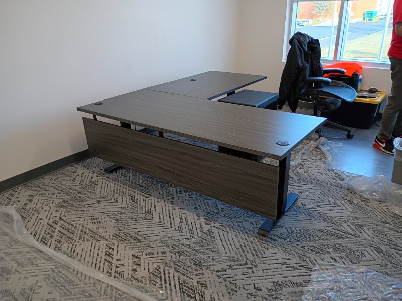 OFS Slate Grey 6' Black L Shape HAT Electric Desk W/ Modesty Panel in 7 finishes