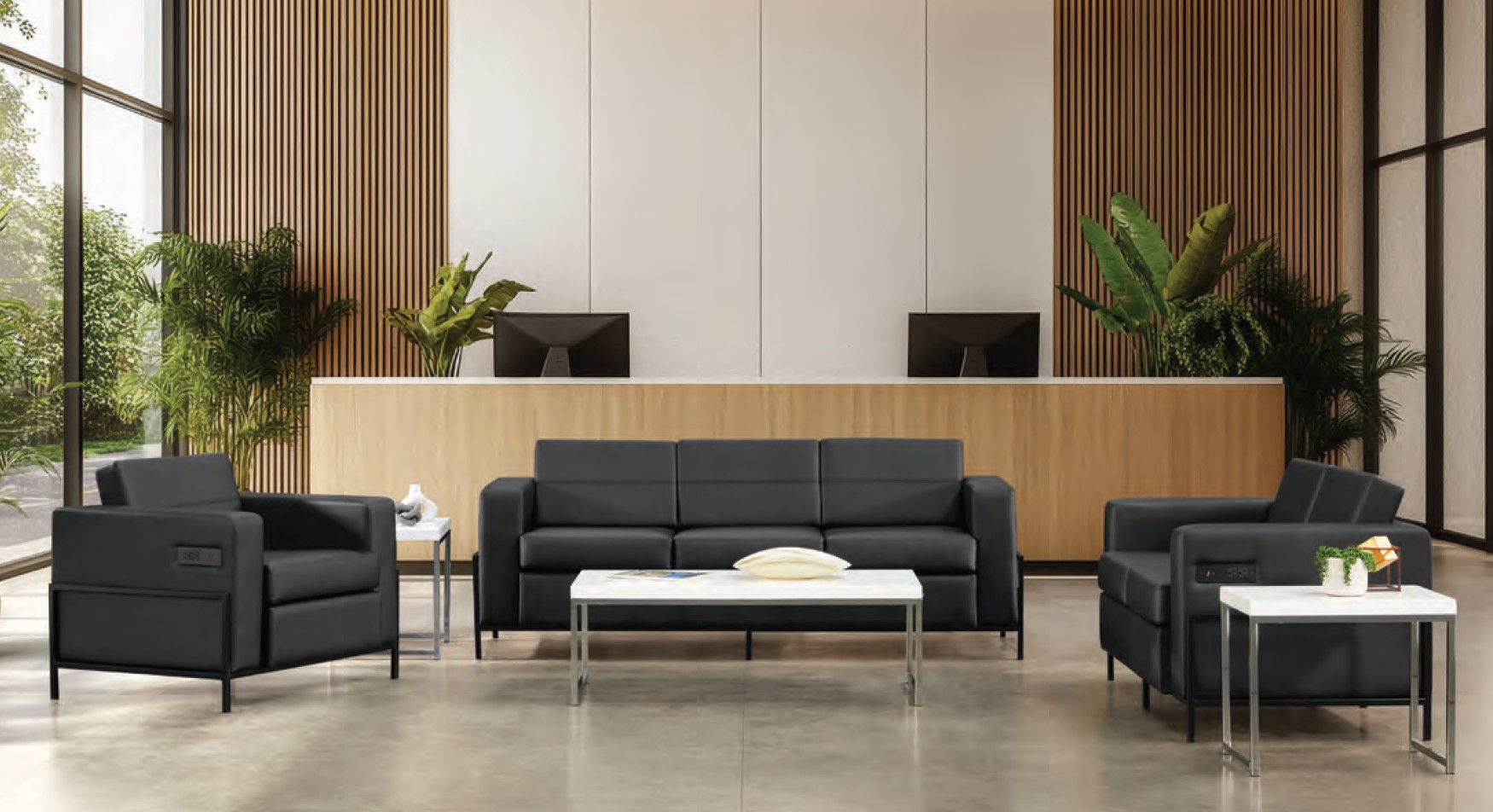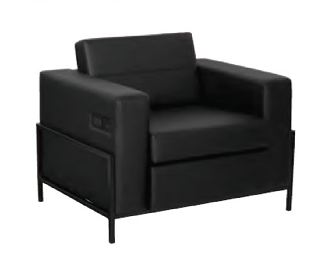 OFS Arctic Black Leather Plush Club Chair, Love Seat & Sofa USB & USB-C Powered