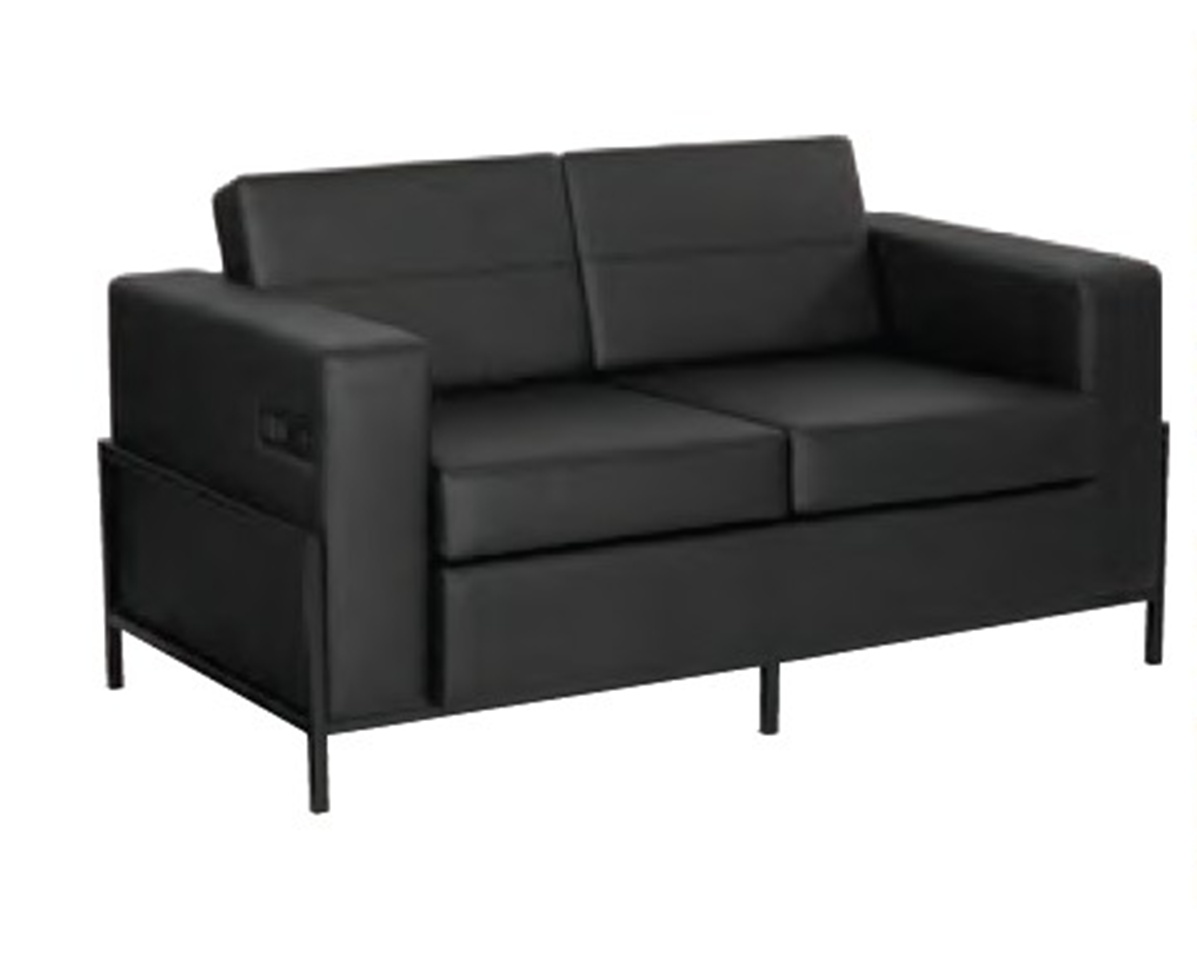 OFS Arctic Black Leather Plush Love Seat USB & USB-C