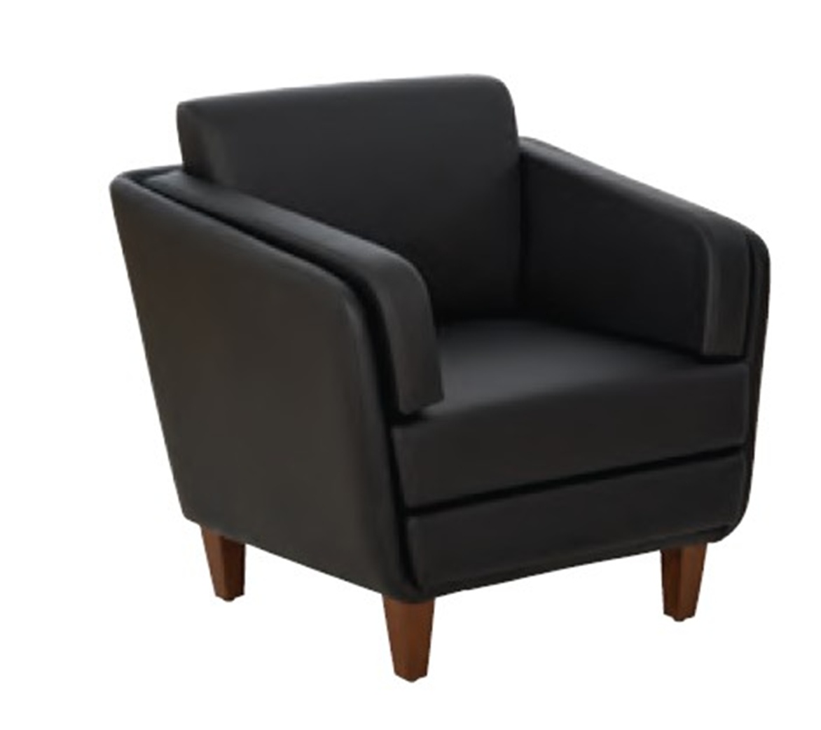 OFS Medium Oak Legs With Black Leather Club Chair