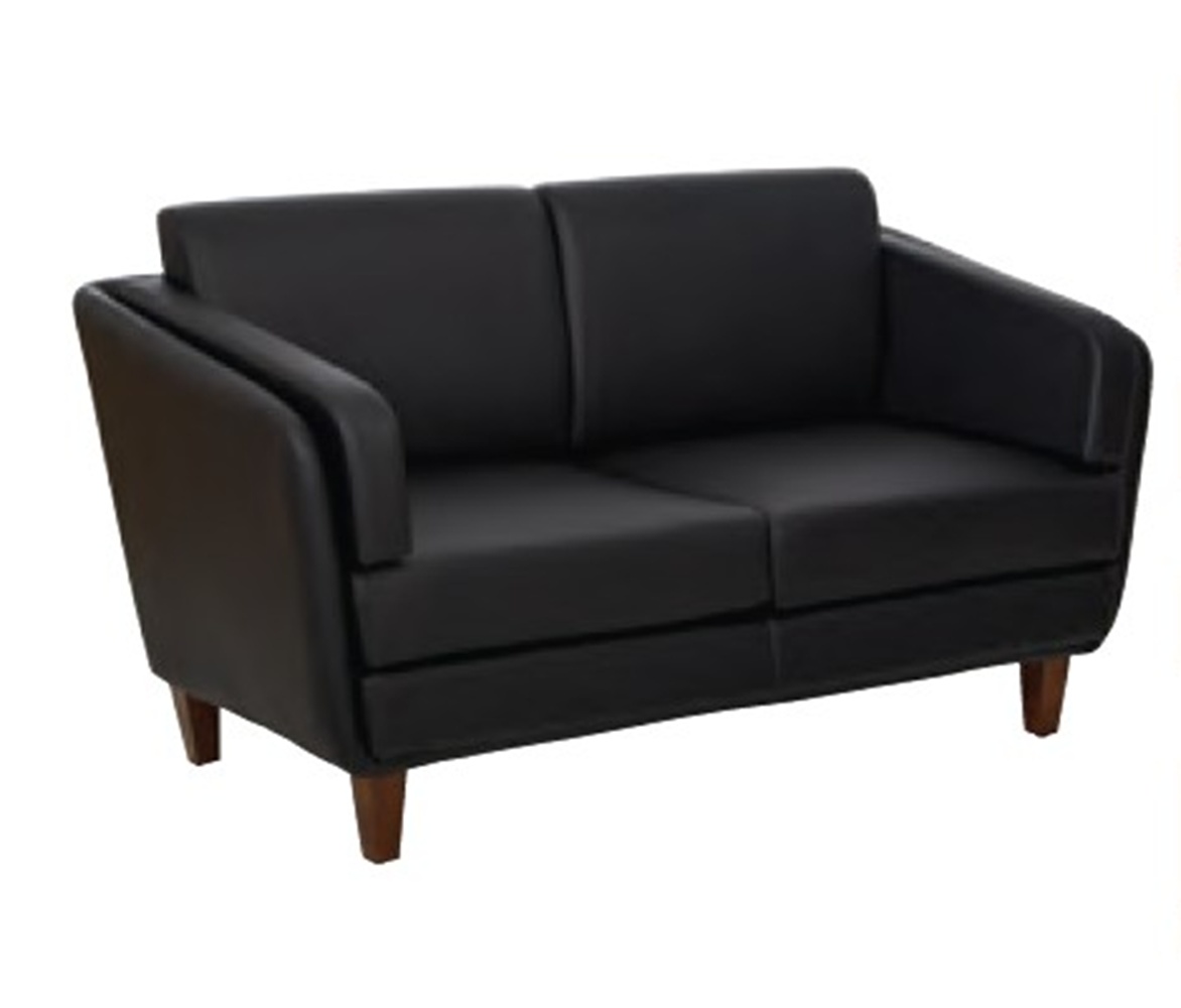 OFS Medium Oak Legs with Black Leather Love Seat