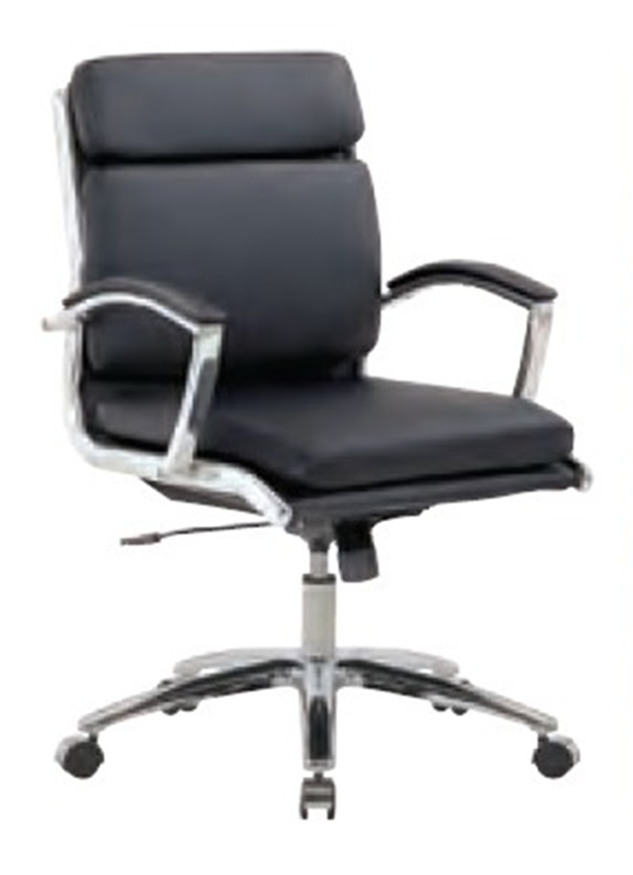 OFS Mid Back Leather Chrome Base Padded Arm Chair in Grey, Black or White